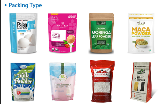 - પાઉચ પ્રકાર:સ્પાઉટ બેગ, ઝિપર બેગ, પિલો બેગ, 3 સાઇડ બેગ, 4 સાઇડ બેગ