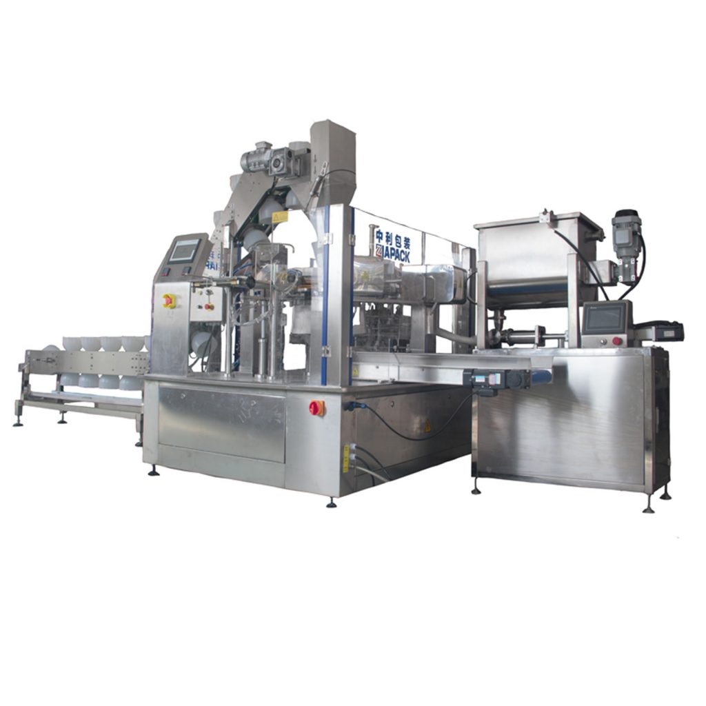આ મશીન નક્કર ઉત્પાદન સાથે મિશ્રિત પ્રવાહી ઉત્પાદન ભરવા માટે ડિઝાઇન કરવામાં આવ્યું છે, જેમ કે સૂપ સાથે અથાણું, અથાણું ઓલિવ, અથાણાંવાળા કાકડીઓ વગેરે. પહેલાથી બનાવેલી બેગમાં ઘન ઉત્પાદનને ખવડાવવા માટે બાઉલ એલિવેટર અને પછી પિસ્ટન પંપ ભરવા માટે. ચટણી