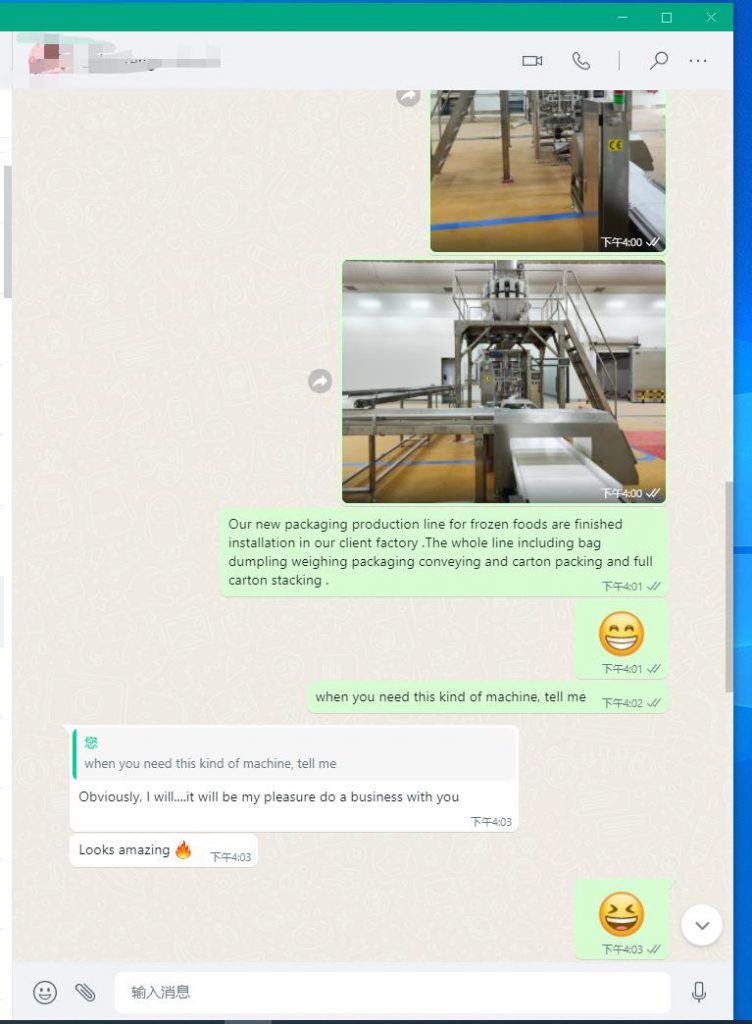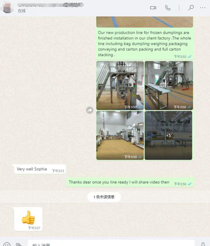 તમે અહિંયા છો: ઘર » સમાચાર » અભિનંદન!ગ્રાહકની ફેક્ટરીમાં બીજી ફ્રોઝન ફૂડ પેકેજિંગ લાઇન ઇન્સ્ટોલ કરવામાં આવી હતી!