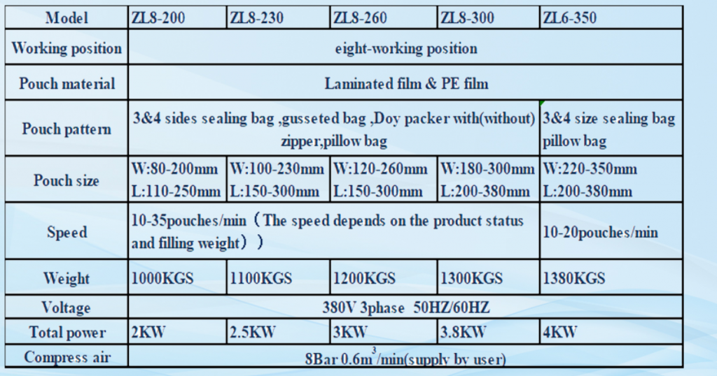 - આ મશીનની ઝડપ રેન્જ સાથે ફ્રીક્વન્સી કન્વર્ઝન દ્વારા એડજસ્ટ કરવામાં આવે છે, અને વાસ્તવિક ઝડપ ઉત્પાદનો અને પાઉચના પ્રકાર પર આધારિત છે.