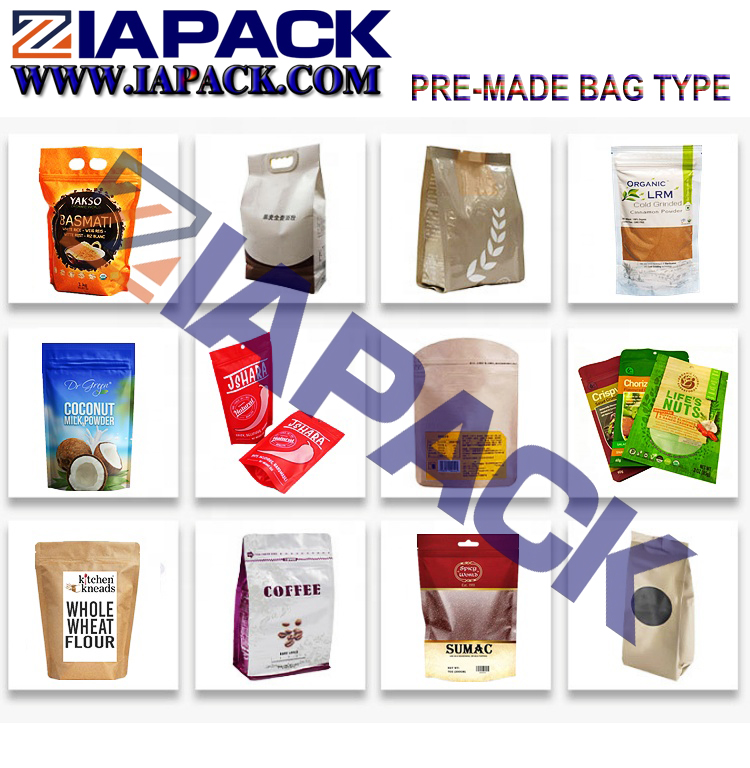 વિવિધ ચોખા, બીજ, ચારા, કઠોળ, ખાંડ, પોપકોર્ન, ચિપ્સ, નટ્સ, પાલતુ ખોરાક, ચા અને મેટલ અથવા પ્લાસ્ટિકના ભાગો, ઓટો સામગ્રી ફીડ, સીલ ફંક્શન ભરો વગેરે માટે પ્રિમેડ પાઉચ માટે સીલ પેકિંગ સોલ્યુશન ભરો.