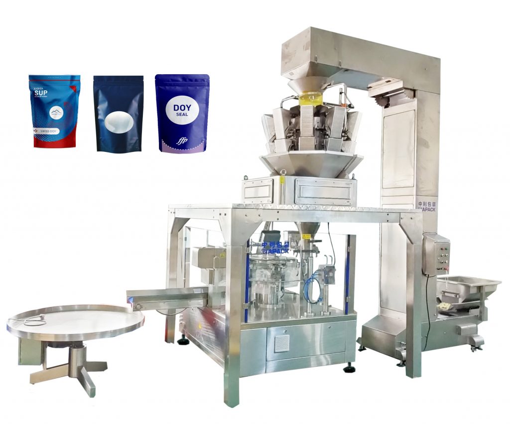 કાર્યક્ષમ અને સ્થિરતાના 8 કાર્યરત સ્ટેશનોથી બનેલા પ્રી-બનાવટ પાઉચ ભરણ અને સીલ મશીન, સ્ટેન્ડ-અપ બેગ, ઝિપર બેગ, સ્પૉટ બેગ અને વિવિધ પૂર્વ-બનાવટ પાઉચના પેકેજ પર ભાર મૂકે છે. જુદી જુદી ડોઝિંગ સિસ્ટમ્સ (મિશ્રણ વજનદાર / રેખીય વાઇજર / ઑગર સ્ક્રુ / પિસ્ટોન ફિલર) અને સ્વચાલિત પ્રશિક્ષણ કન્વેઅર્સ સાથે સહકાર, તે ગ્રેન્યુલ્સ, પ્રવાહી અને પાવડરને વ્યાપકપણે લાગુ પડે છે.