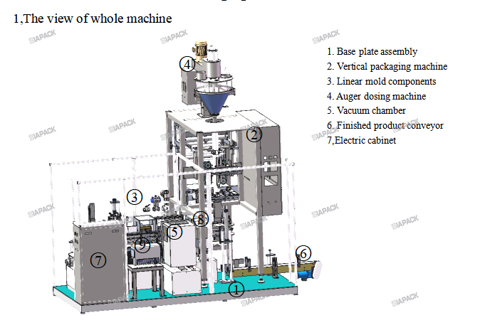 આ વેક્યુમ પેકેજિંગ મશીન સંપૂર્ણપણે સ્વચાલિત બેગ બનાવવા, બેગ દૂર કરવા, ખોરાક આપવા, વજન કરવા, સામગ્રીના વાઇબ્રેશન, આકાર આપવા, વેક્યુમિંગ, સીલિંગ અને ફિનિશ્ડ પ્રોડક્ટ ડિલિવરી એકમાં કરી શકે છે, અને છૂટક સામગ્રીને ઉચ્ચ મૂલ્ય સાથે ફિક્સ-વેઇટ મોલ્ડિંગમાં પેક કરી શકે છે. હેક્સાહેડ્રલ પેકેજ. આ એકમનો ઉપયોગ ચોખાના વિવિધ અનાજ અને પાવડર સામગ્રી જેવા અનાજ ઉત્પાદનોના વેક્યુમ પેકેજિંગમાં વ્યાપકપણે થાય છે. બેગ આકારમાં સુંદર છે અને સીલિંગ અસરમાં સારી છે, જે બોક્સિંગ, બોક્સિંગ અથવા સીધા છૂટક વેચાણ માટે અનુકૂળ છે.