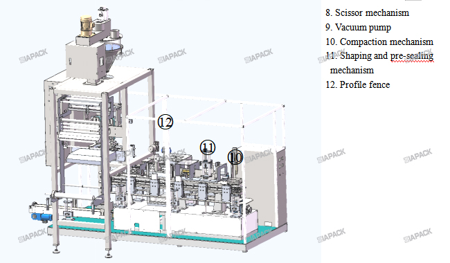 બેગ બનાવવી→બેગ ચૂંટવું→કટીંગ→વાઇબ્રેશન→આકાર આપવો અને પ્રી-સીલિંગ→વેક્યુમાઇઝિંગ→બેગ ડ્રોપિંગ અને પુશિંગ→ફિનિશ્ડ પ્રોડક્ટ ડિલિવરી